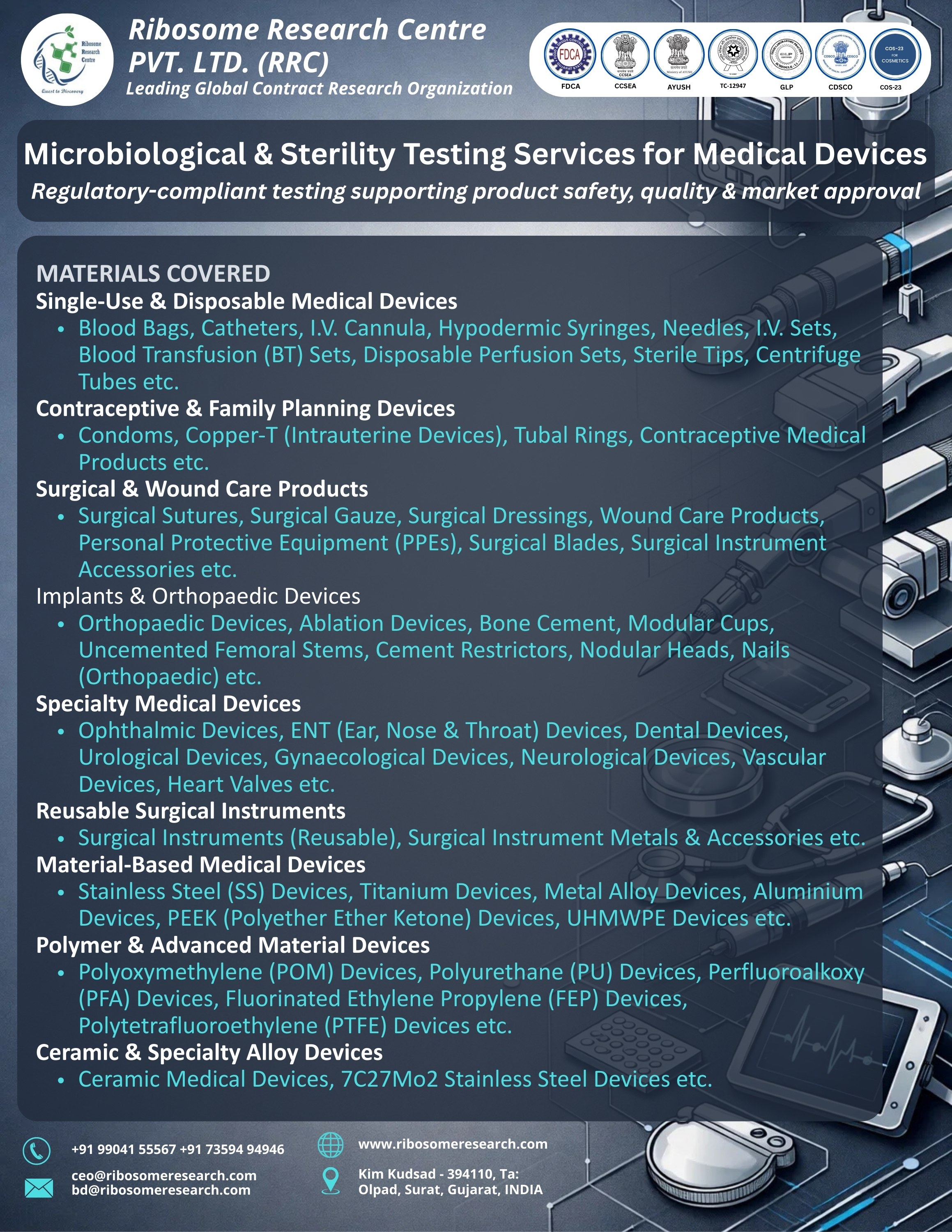 Regulatory-compliant testing supporting product safety, quality & market approval